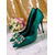 Women's Emerald Green Satin Ankle Strap Heels – Pointed Toe Cocktail Shoes with Crystal Embellishments for Parties and Weddings