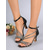 Women's Black Wedge Sandals with Rhinestone Detail - Glamorous Shoes for Nightlife Parties