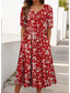 Women's Print Dress Maxi Dress Red Beige Half Sleeve Flower / Floral Pocket Summer V Neck Dresses Beach S M L