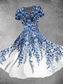 Women's Graduation Dress Midi Dress Chiffon Dress Shift Dress Summer Dress Elegant Stylish Formal Formal Wedding Guest Daily Loose Fit Floral Graphic Half Sleeve Crew Neck Sky Blue Summer Spring Fall
