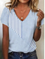 Women's T Shirt Striped Stylish Casual Short Sleeve V Neck Regular Tops Daily Print Pink Summer Spring