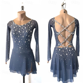 Figure Skating Dress Women's Girls' Ice Skating Dress Grey Patchwork Asymmetric Hem Mesh Spandex High Elasticity Training Competition Skating Wear Classic Crystal / Rhinestone Sleeveless Ice Skating