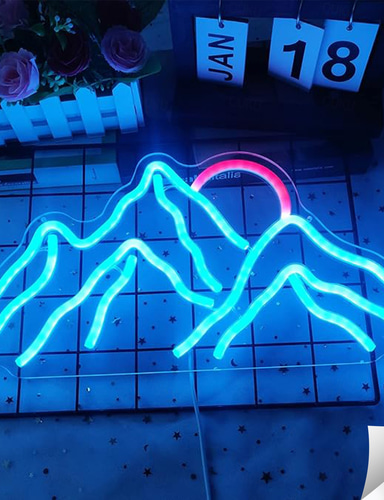 Mountain Sunset Neon Sign Light, USB Powered Dimmable LED Wall Light for Bedroom, Kids Room & Living Room Decor