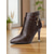 Women's Brown Faux Leather Block Heel Western Ankle Boots – Side Zip & Buckle Strap, Casual & Country Concert Footwear