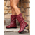 Women's Burgundy Mid-Calf Buckle Boots with Slouch Design – Retro Riding Style Casual Winter Boots for Fall Outfits and Everyday Wear
