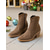 Women's Almond Mid Calf Boots – Faux Suede Slip-On Flat Slouchy Boots for Casual Wear and Everyday Outfits