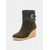 Women's Fuzzy Cuffed Wedge Boots, Brown Suede with Zipper and Buckle Detail, Warm and Cozy Winter Boots for Cold Weather, Casual Outings and Holiday Celebrations