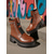 Women's Mocha Brown Western Cowboy Boots with White Embroidered Details and Block Heels, Bohemian Western Style Footwear