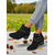 Women's Black Floral Print Combat Boots – Lace-Up Side Zip, Chunky Lug Sole, Stylish Casual & Festival Footwear