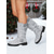 Women's Silver Metallic Knee-High Boots – Shiny Snake Print Slouchy Block Heel Boots for Party, Club & Festival Fashion