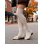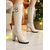 Women's White Mid-Calf Block Heel Boots with Retro Style and Ruched Design - Perfect for Winter Fashion and Daily Wear