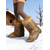 Women's Mocha brown Fold-Over Shaft Cowboy Boots with Side Zipper and Buckle Straps, Bohemian Western Style Footwear
