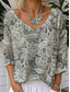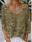 Women's T-Shirt Floral Graphic Plants Vintage Tropical Stylish 3/4 Length Sleeve V Neck Regular Tops Daily Going out Weekend Silver Gold Khaki Summer Spring