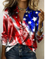 American Independence Day Women's Shirt Satin Shirt Button Down Shirt Casual Shirt Print Graphic Flag Classic Casual Long Sleeve Shirt Collar Regular Tops Daily Holiday Going out White Red Red / Blue