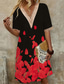 Women's Mini Dress Petite Dress Casual Dress Boho Chic Dresses Summer Dress Boho Dress Casual Boho Vacation Daily Beach Loose Fit Floral Short Sleeve V Neck Red Blue Fuchsia Summer