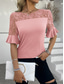 Women's Lace Shirt Lace Patchwork Solid Color Stylish Casual Half Sleeve Crew Neck Regular Tops Daily Black Pink Purple Green Summer