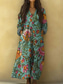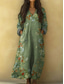 Women's Maxi Dress Sundress A Line Dress Vacation Casual Boho Beach Going out Loose Fit Floral Graphic Long Sleeve V Neck Light Green Green Khaki Summer Spring