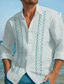Pánské Lněná košile Letní košile Oblečení na pláž Košile na knoflíky Geometrický Dovolená Ležérní Černá Bílá Vodní modrá Krátký rukáv Přehnutý Léto Jaro Oblečení Slátanina