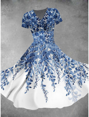 Dámské Midi šaty Koktejlky Šifonové šaty Květinové šaty Šaty s potiskem Módní Moderní Venkovní Dovolená Čajový dýchánek Běžný Květiny Krátký rukáv Do V Vodní modrá Trávová zelená Světle modrá Léto