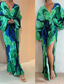 Dámské Dlouhé šaty Maxi šaty Koktejlky Šifonové šaty Ruched šaty Módní Párty Čajový dýchánek Jdeme ven Běžný Květiny Dlouhý rukáv Do V Trávová zelená Léto
