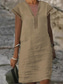 Dámské Midi šaty Imitace bavlny a lnu Úpletové šaty Volnočasové šaty Tričkové šaty Na běžné nošení Denní Dovolená Běžný Tónované Krátký rukáv Do V Černá Žlutá Rubínově červená Námořnická modř Léto