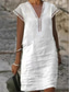 Dámské Midi šaty 100% Bawełna Úpletové šaty Bavlněné lněné šaty Volnočasové šaty Základní Klasické Na běžné nošení Denní Venkovní Dovolená Volný Bez vzoru Poloviční rukáv Do V Bílá Žlutá Světl
