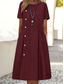 Dámské Midi šaty Imitace bavlny a lnu Úpletové šaty Volnočasové šaty Základní Na běžné nošení Denní Dovolená Běžný Bez vzoru Krátký rukáv Tričkový Vodní modrá Fialová Hnědá Léto