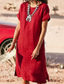 Dámské Dlouhé šaty Maxi šaty Imitace bavlny a lnu Úpletové šaty Volnočasové šaty stylové Na běžné nošení Denní Dovolená Rande Běžný Bez vzoru Krátký rukáv Tričkový Černá Rubínově červená Léto Jaro