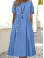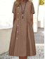 Dámské Dlouhé šaty Maxi šaty 100% len Košilové šaty Bavlněné lněné šaty Plátěné šaty Základní Na běžné nošení Ležérní Denní Dovolená Volný Bez vzoru Poloviční rukáv Košilový límec Vodní modrá Trávov