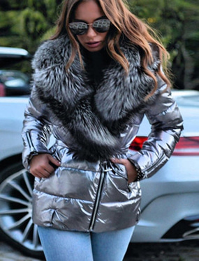 Dámské Zimní bunda Puffer bunda Ležérní Denní Zima Standardní Kabát Rolák Volný Zahřívací Na běžné nošení Saka Dlouhý rukáv Jednobarevné Çıkarılabilir Kürk Yaka Stříbrno šedá Černá