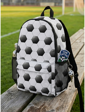 Unisexový polyesterový batoh s fotbalovým potiskem, velkoobjemová školní taška s nastavitelnými popruhy pro fotbalový trénink, zápasový den, podporu fanoušků a každodenní školní použití