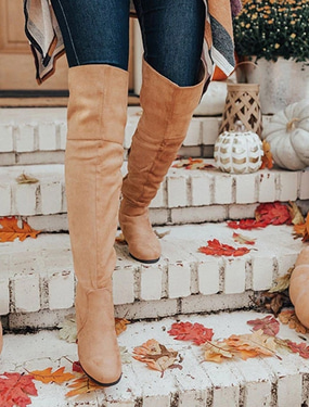 dámské khaki kozačky nad kolena z umělého semiše s blokovým podpatkem – stylové a pohodlné pro podzimní a zimní módu