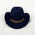 kovový pásek westernový kovbojský klobouk pánské pánské ženy jazzový kovbojský klobouk s koženou širokou krempou cloche church sombrero cowgirl