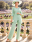 Dvoudílný kalhotový kostým do země šaty matky nevěsty dlouhý rukáv V výstřih elegantní jednoduché pro svatební hosty s květinou jednobarevné