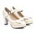 dámské krémové lodičky mary jane na t-pásek s brogue detaily – boty na podpatku ve stylu vintage 30. let na večírky, svatby a retro outfity