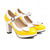 dámské žluté lodičky na podpatku mary jane s kulatou špičkou a nastavitelným páskem pro retro styl, kancelářské oblečení i formální události