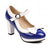Dámské vintage Mary Jane boty na podpatku z 50. let - modré semišové lolita boty s mašlemi a krajkovým lemem na čajové dýchánky, cosplay nebo retro módu
