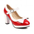 Dámské retro lodičky Mary Janes s páskem T z 50. let - elegantní červeno-černé dvoubarevné lodičky s detailem křídel a robustním podpatkem na vintage večírky a kancelářské nošení. &swingový tanec