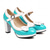 Dámské světle modré boty Mary Jane s T-strap platformou a robustním podpatkem – kožené lodičky na platformě s kulatou špičkou a přezkou pro běžné nošení, kancelářské outfity a jarní letní akce.