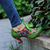 dámské zelené kožené podpatky mary jane s květinovým potiskem, stuhami a retro stylem – ideální pro akce s vintage tématikou a každodenní eleganci