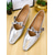 Dámské stříbrné metalické lodičky Mary Jane se středním podpatkem a nastavitelným páskem – pohodlné a elegantní kancelářské boty do práce i na dojíždění