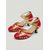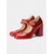 Dámské červeno-růžové lodičky Mary Jane s páskem do T na blokovém podpatku ve francouzském stylu - pohodlné retro boty na odpolední čaj, večírky, do kanceláře i na každodenní outfity.