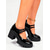 Dámské černé boty na platformě s robustním podpatkem a kříženým páskem – pohodlná a moderní pracovní obuv do kanceláře, na dojíždění i na každodenní nošení