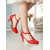 Dámské červené lodičky Mary Jane na blokovém podpatku - společenské boty z umělého semiše s kulatou špičkou a páskem přes kotník, vintage styl do kanceláře, na večírky i na každodenní nošení