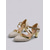Dámské vintage gatsby zlaté podpatky z 20. let - elegantní lodičky se zkříženým páskem přes kotník a špičatou špičkou s kovovou povrchovou úpravou pro kostýmy flapperů, jazzové večírky &retro svatby