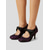 dámské lodičky z umělého semiše mary jane na platformě - mohutné boty na vysokém podpatku s kamínkovou přezkou pro formální události