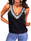 Dámská tílko s geometrickým vzorem bez rukávů V výstřih běžné černé letní tričko