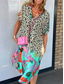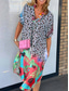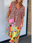 Dámské Dlouhé šaty Maxi šaty Letní šaty Vinobraní stylové Dovolená Denní Volný Grafika Leopard Krátký rukáv Do V Světlá růžová Vodní modrá Oranžová Hnědá Léto