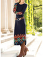 Dámské Etnické šaty Volné šaty Maxi dlouhé šaty Světlá růžová 3/4 délka rukávu Květiny marocký Velkoformátové Potisk Jaro & podzim Pro více ročních období vroubkovaný límec Na běžné nošení Prodyšn