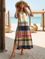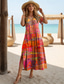 Dámské midi šaty lněného vzhledu sluneční šaty rovné šaty na dovolenou boho plážové volné střihy grafické geometrické bez rukávů kulatý výstřih modré červené oranžové léto jaro